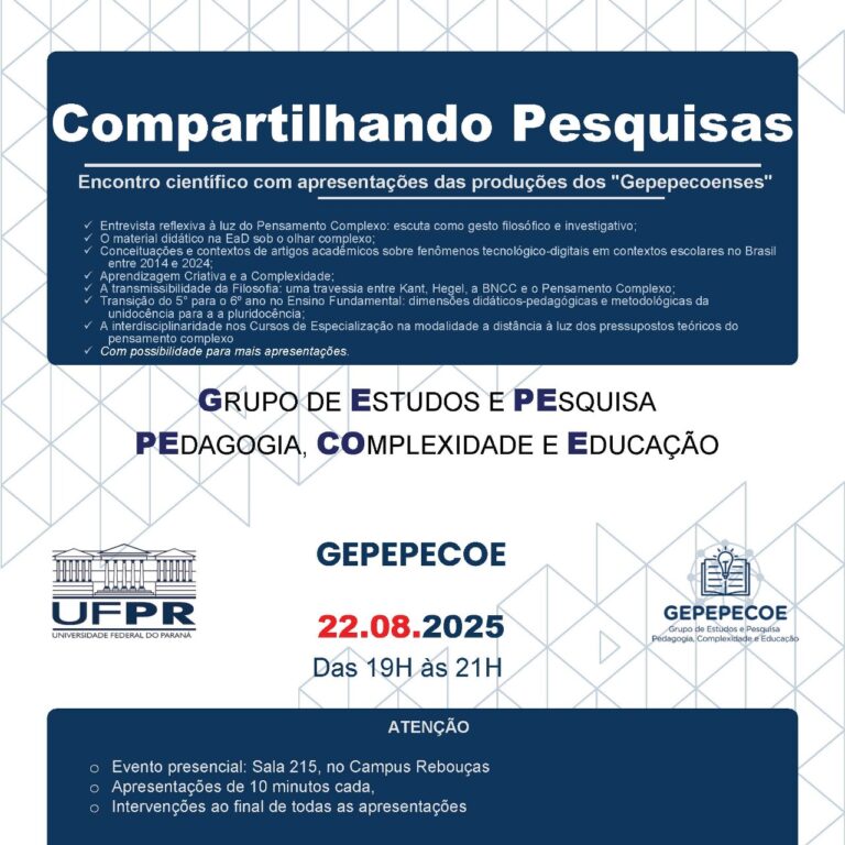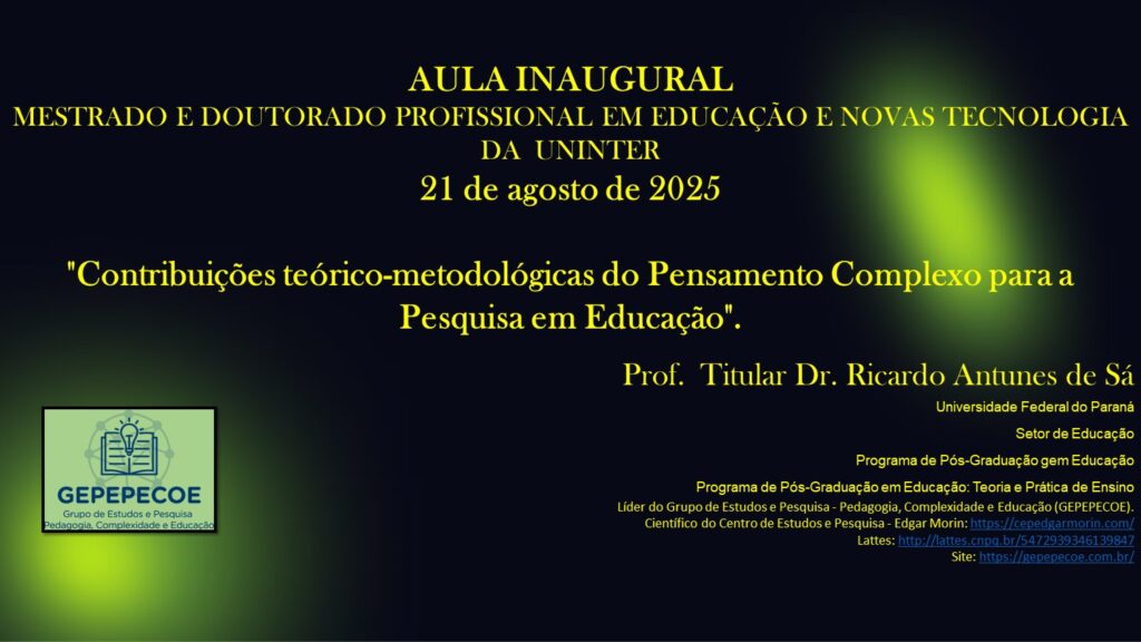 Facebook Instagram Youtube REVISÃO NARRATIVA DA PRÁTICA PEDAGÓGICA NA EDUCAÇÃO INFANTIL: APROXIMAÇÕES COM O PENSAMENTO COMPLEXO Data de Publicação: 20.09.2025 Autores: Maria da Glória GalebRicardo